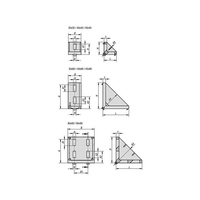 - Łącznik T Ø30 z przyłączem do rowka 8 typ Iz zabezpieczeniem przed przekręceniem