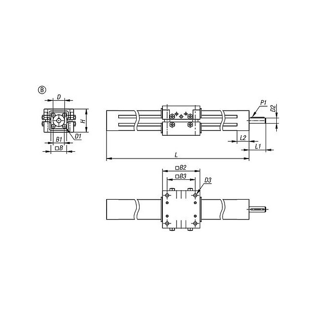 JEDNOSTKA LINIOWA KWADRATOWY, Z LOZYSKIEM SLIZGOWYM B=50, L=1000, FORMA:B MONTAGEPLATTE BEIDSEITIG,