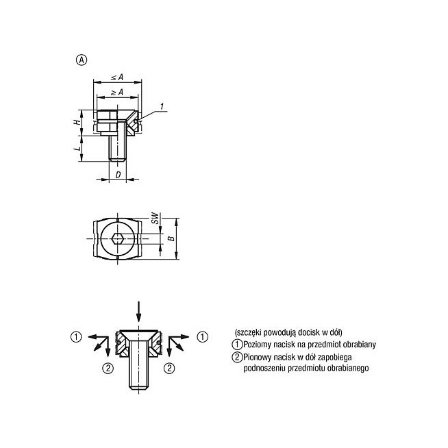 ROZPIERACZ KLINOWY GLADKI ZE SRUBA Z LBEM STOZKOWYM, FORMA:A D=M05X15, L=9,5, STAL HARTOWANE I OKSYDOWANE