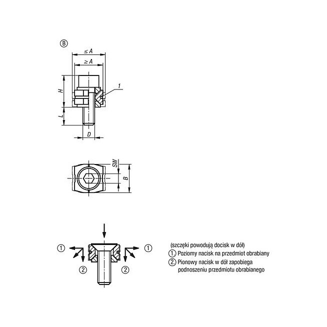 ROZPIERACZ KLINOWY GLADKI ZE SRUBA Z LBEM WALCOWYM, FORMA:B D=M08X25, L=14,9, STAL HARTOWANE I OKSYDOWANE