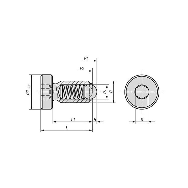 ZATRZASK SIŁA SPRĘŻYNY, Z LBEM, D=M12 L=32, STAL NIERDZEWNA, KOMP:KULA ZE STALI NIERD.