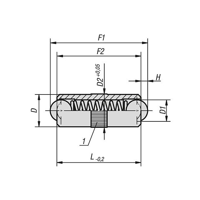 ZATRZASK SIŁA SPRĘŻYNY, WERSJA GLADKA, DWUSTRONNY, D=8 L=20, MOSIADZ, KOMP:KULA ZE STALI NIERD.