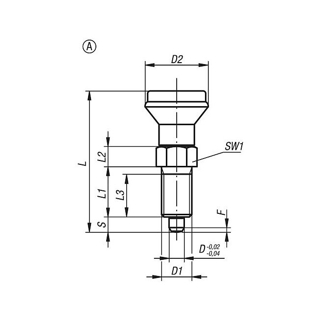 TRZPIEN USTALAJACY RO.2 D1=M12X1,5, D=6, FORMA:A BEZ KLOW PODPIERAJACYCH BEZ NAKRĘTKI ZABEZPIECZAJ, STAL