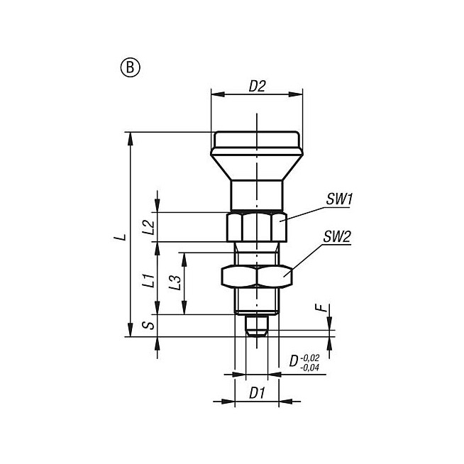 TRZPIEN USTALAJACY RO.2 D1=M12X1,5, D=6, FORMA:B BEZ KLOW PODPIERAJACYCH Z NAKRĘTKI ZABEZPIECZAJĄCĄ, STAL