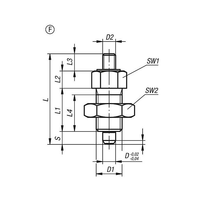 TRZPIEN USTALAJACY BEZ KLOW PODPIERAJACYCH RO.5 D1=M24X2, FORMA:F, STAL NIERDZEWNA NIEHARTOWANY