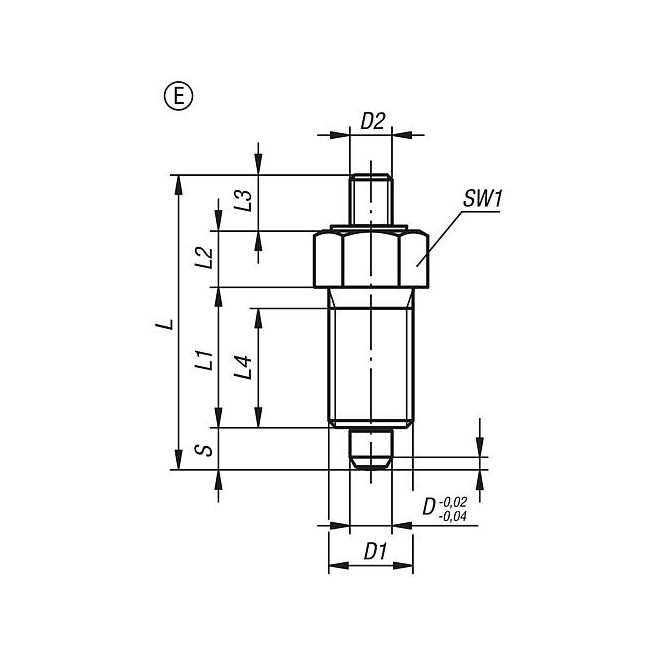 TRZPIEN USTALAJACY BEZ KLOW PODPIERAJACYCH RO.4 D1=M20X1,5, FORMA:E, STAL NIERDZEWNA NIEHARTOWANY
