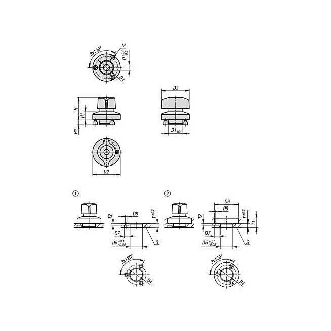 - Trzpienie montażowe z uchwytem grzybkowym ze stali nierdzewnej, o dużej wytrzymałości na ścinanie, regulowane