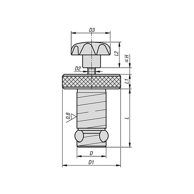 TRZPIEN POZYCJONUJACY BALL LOCK STAL ULEPSZENIU CIEP., Z POKRETLEM GWIAZDZISTYM, KOMP:TERMOPLAST, CZARNY,