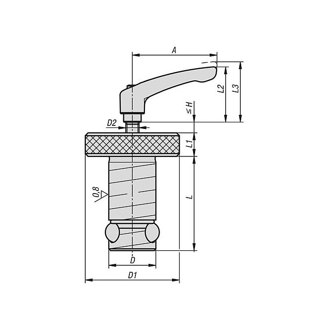 STOPKA M.KUGEL-AUSGLEICHSTELLER, NASTAWNY, BEZ NAKRĘTKI ZABEZPIECZAJ, D2=32, M08, STAL ULEPSZENIU CIEP.