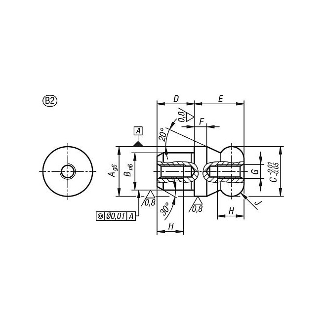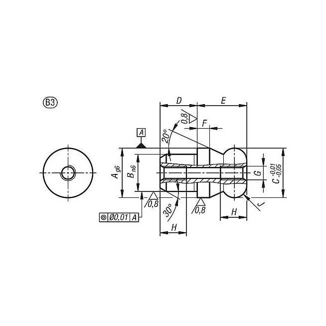 KOLEK INNENGEWINDE BEIDSEITIG RO.3 C=6, A=6, G=M02,5, FORMA:B STEPPED WITH BALL-END, STAL NARZEDZIOWA