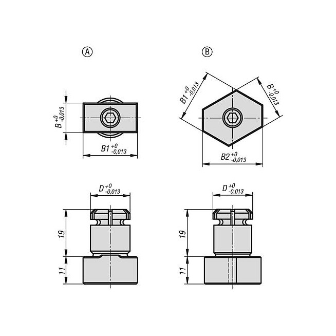 - Trzpienie ustalające ze stali nierdzewnej z uchwytem grzybkowym ze stali nierdzewnej - inch