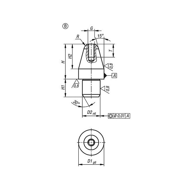 - Trzpienie ustalające ze stali lub stali nierdzewnej z uchwytem grzybkowym z tworzywa sztucznego, z pokrywą - inch