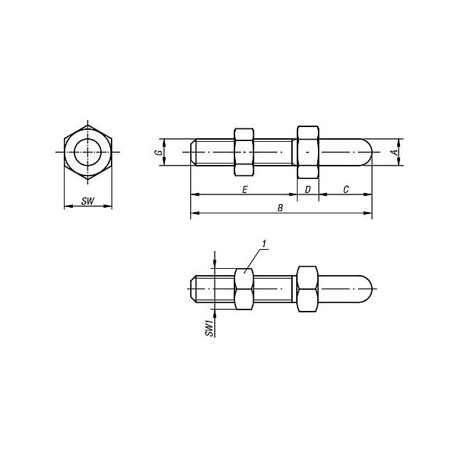 SRUBA PODPIERAJACA Z PRZECIWNAKRETKA, M16, E=60, SW=24, B=105, STAL ULEPSZENIU CIEP.