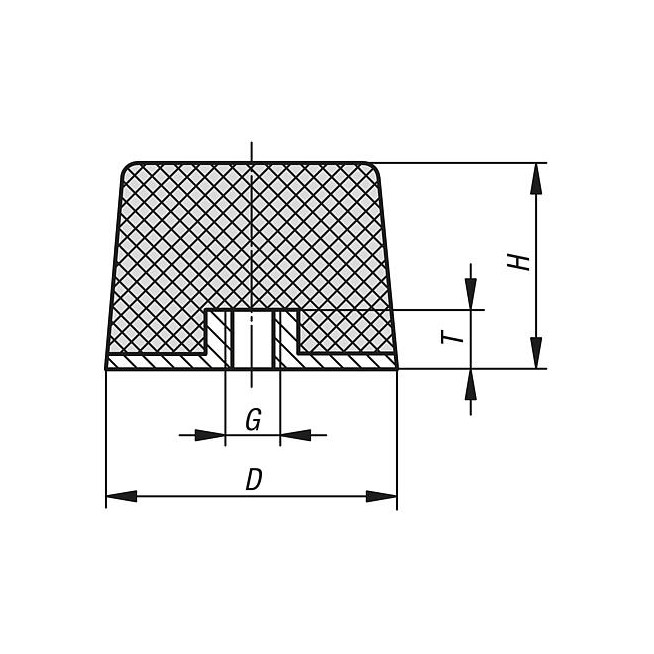 AMORTYZATOR GUMOWY STOZKOWY GWINT WENĘTRZNYM12, D=75, H=28, STAL, OCYNKOWANY, KOMP:ELASTOMER - KAUCZUK