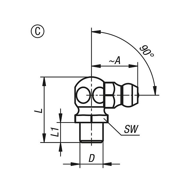 SMAROWNICZKA DIN3405, FORMA:C, D=10, WYGIĘTE POD KĄTEM 90°, SZESCIOKAT, STAL OCYNKOWANY