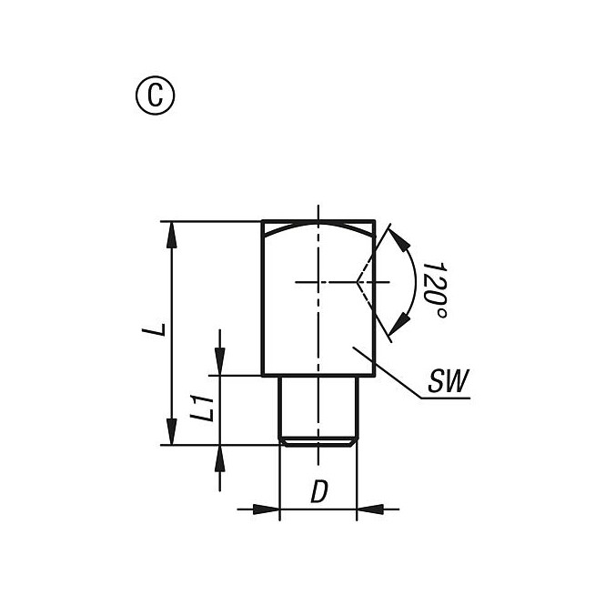 - Głowice przegubowe z łożyskowaniem ślizgowym gwint zewnętrzny, wersja wąska, DIN ISO 12240-1, niewymagające konserwacji
